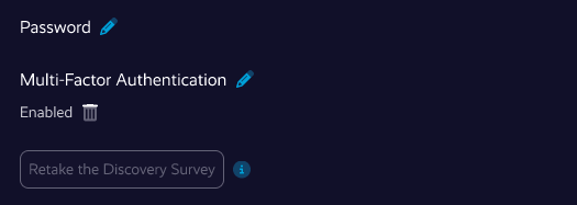 - Once complete, MFA will be enabled for your account. You’ll see a confirmation message and can disable MFA at any time by returning to your Account Settings and going through the Delete flow.